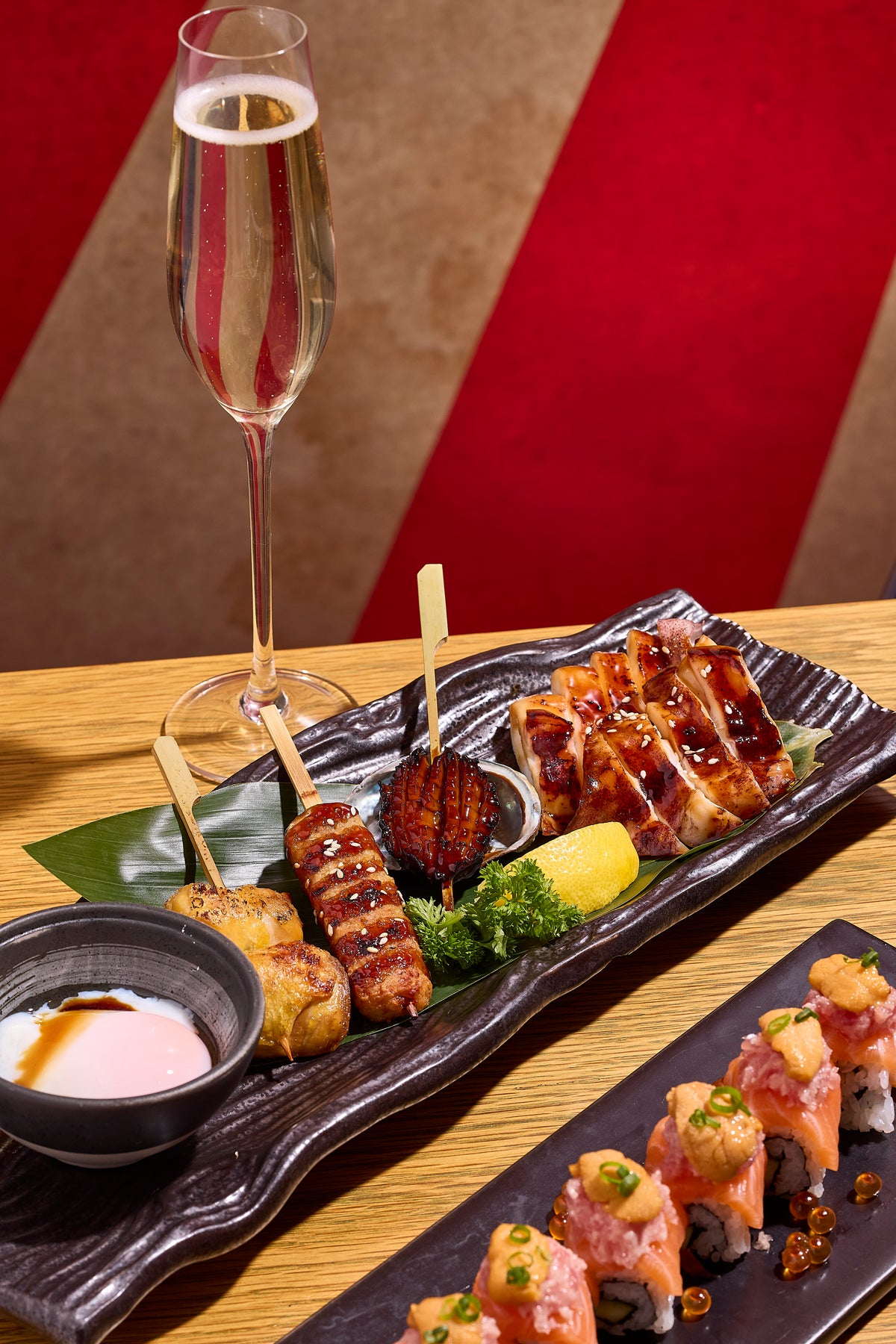 Craft your perfect brunch with the Signature Izakaya Set: pick 4 sizzling skewers, add sashimi or sushi, pick your favourite main, and finish with a sweet treat from us.
