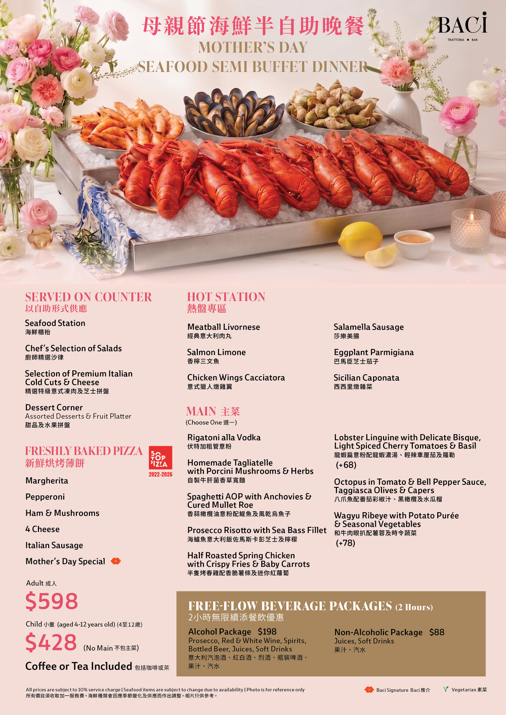 BACI Mother's Day Buffet Dinner (20% Off, Food Only) [Deposit]