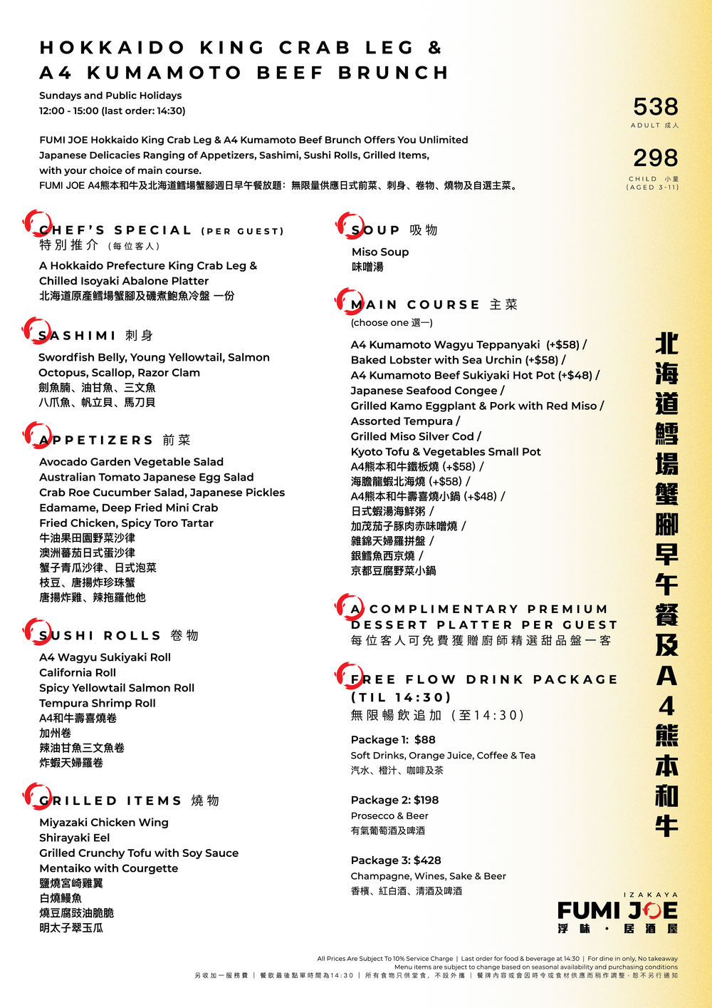 FUMI JOE A4 Kumamoto Beef & Hokkaido King Crab Leg Brunch (15% Off Food only) [Deposit]
