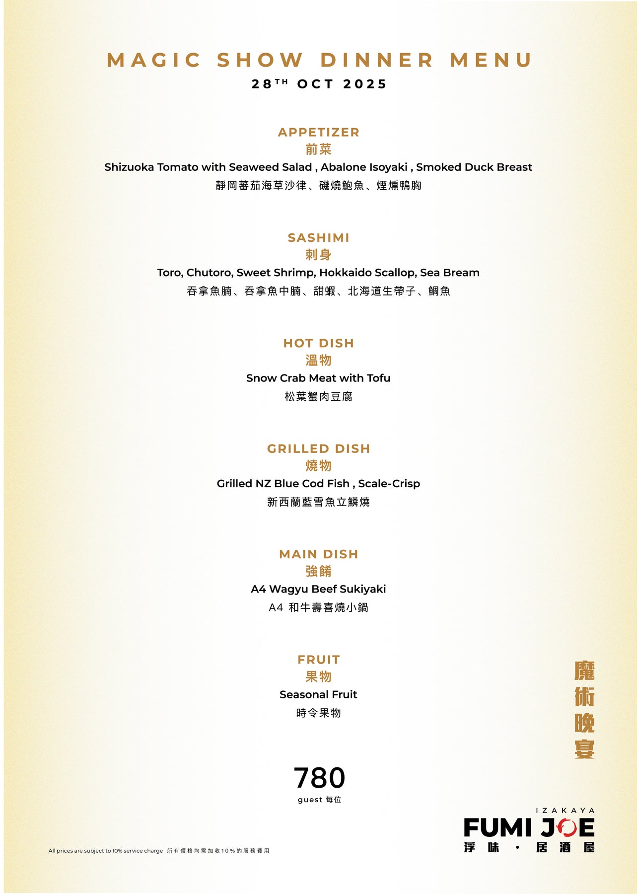 On October 28, 2025, Fumi Joe invites you to an exclusive six‑course dining experience that blends fine cuisine, mystery, and mind‑reading magic. This is not just dinner—it’s a journey into the unknown.