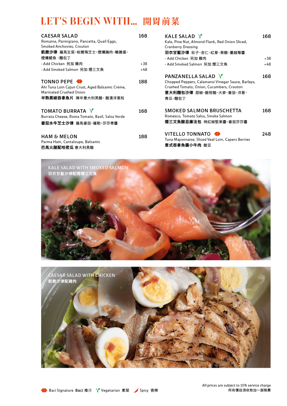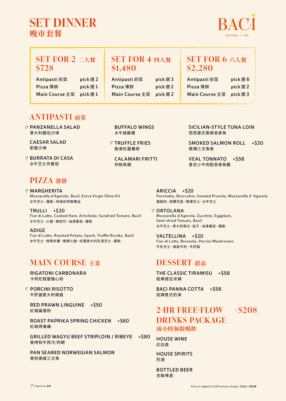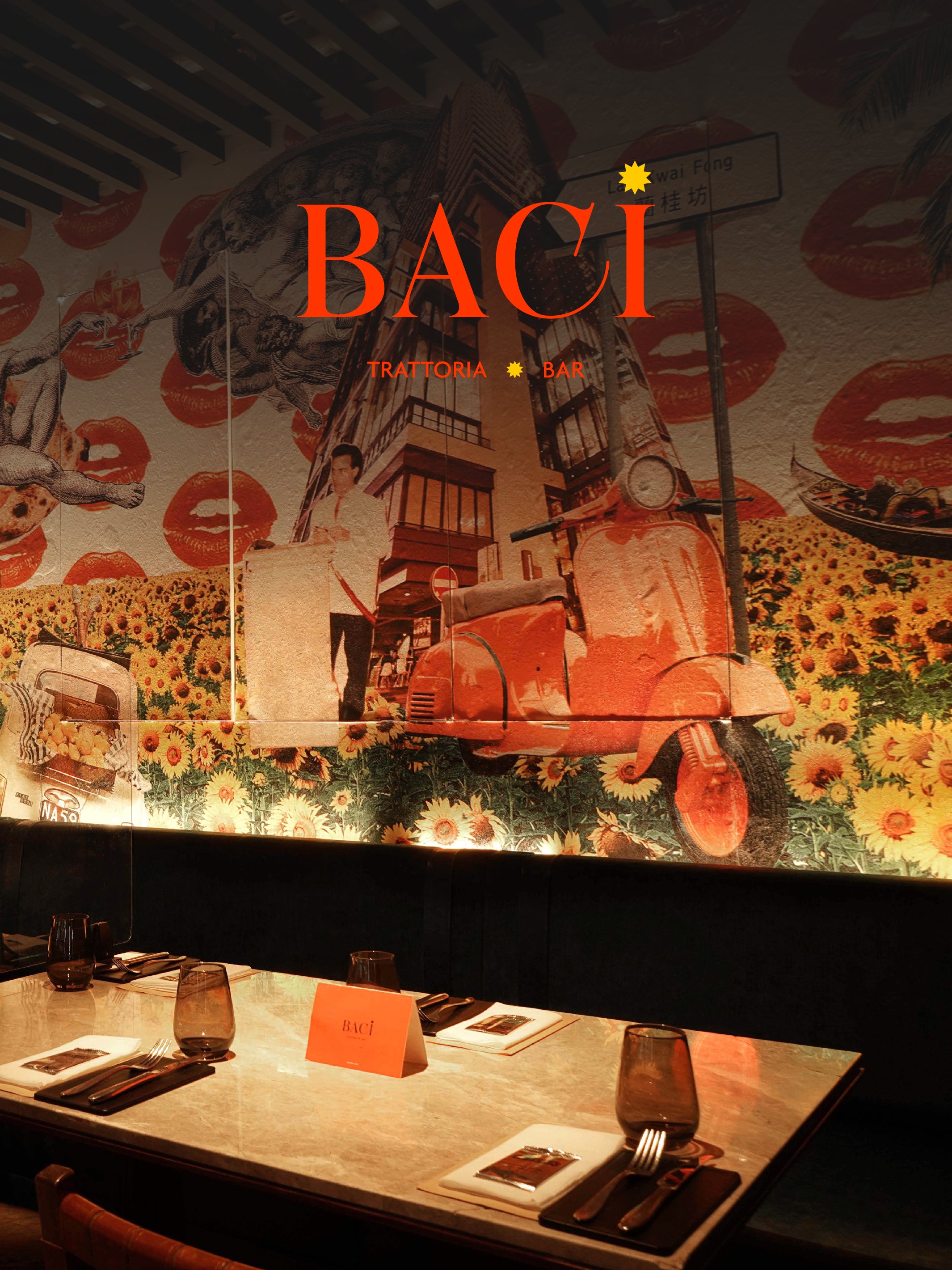 Casual and convivial, BACI (Italian for kisses) is a slice of magic that delights with a cosy and relaxed atmosphere centred around Italian comfort food. Ranked as the Top 2 of all HK pizzerias for four consecutive years, BACI is famed for its superb quality of pizza dough and ingredients. From pizza to pasta – with a drink in between – we pay homage to the ingredients and honest flavours of Italy. As an all-day trattoria and bar conveniently located in the heart of Lan Kwai Fong, bring your friends, family, date or simply go enjoy a drink at the bar alone, it all works.