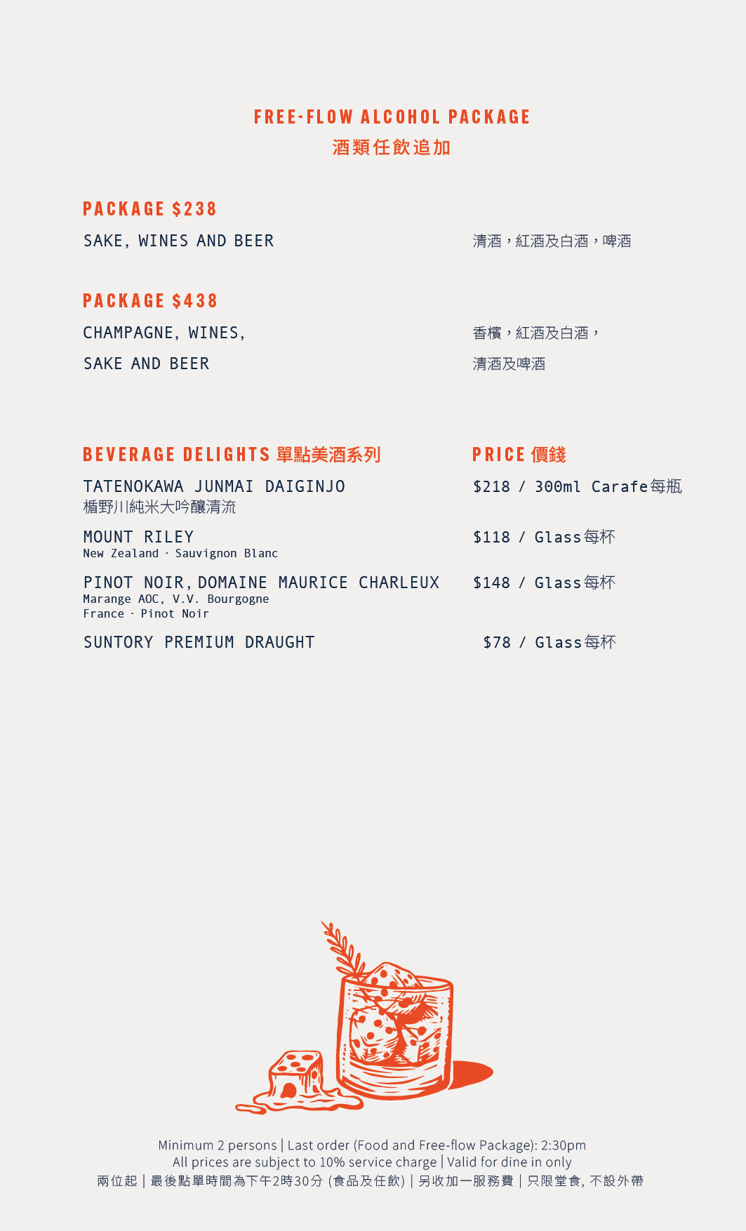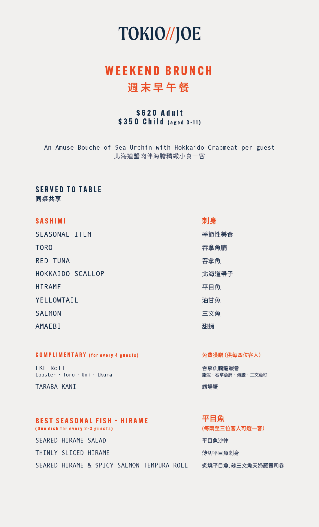 *Unless stated otherwise, any discounts offered are for food only. Drinks and beverages are not include. A Deposit payment of HK$200 per guest is required to secure your seat, entitles you to the discount, and will be deducted off the final bill.