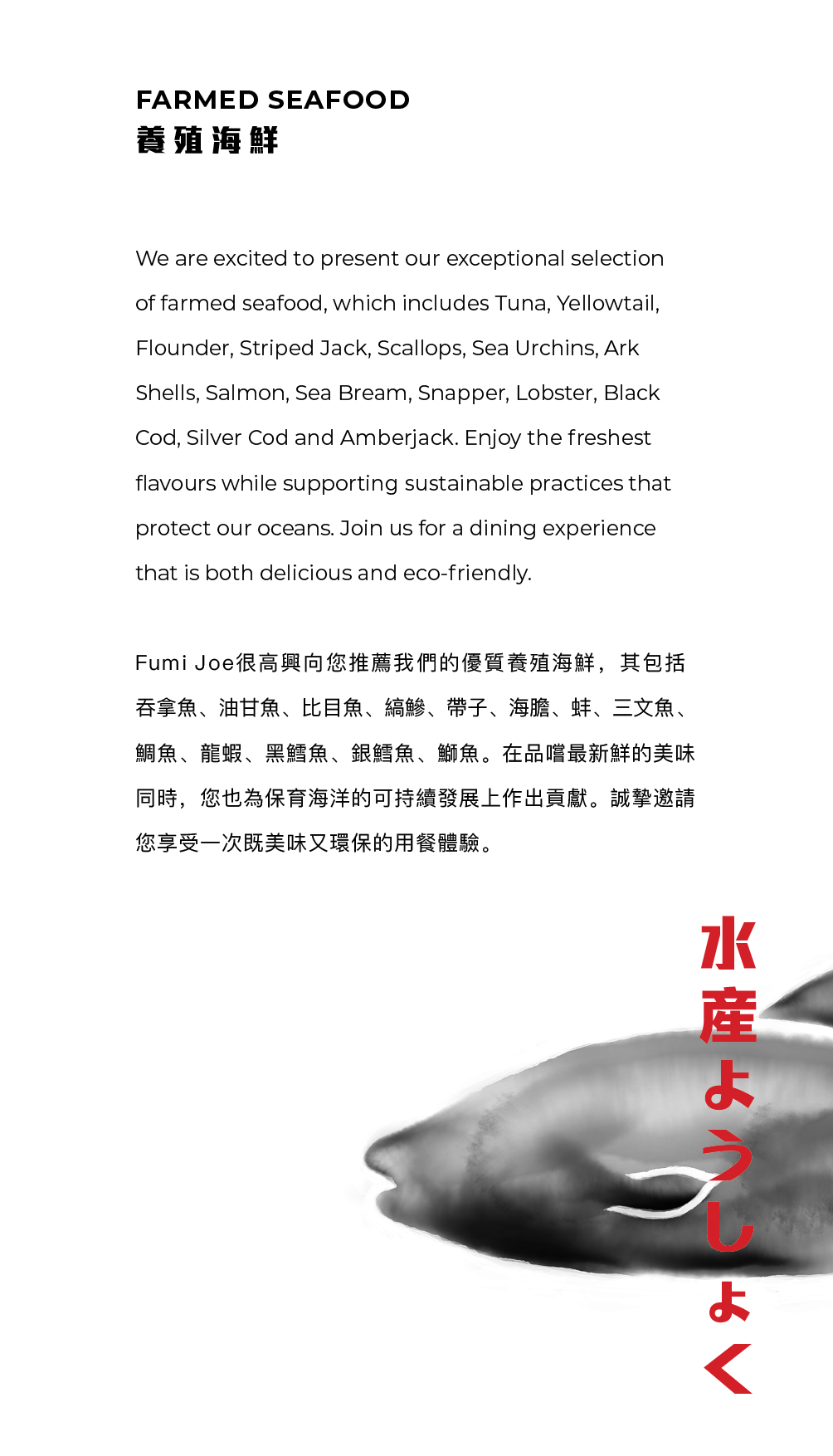 FUMI JOE has a simple concept: to deliver original, unique Japanese dishes in Hong Kong. The restaurant places a strong emphasis on using fresh ingredients, with a dedicated team that strives to create a warm, friendly atmosphere for guests.